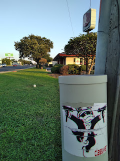 Please immediately remove this allegedly dangerous poster in front of a very reputable "Jack in the Box" chain restaurant in north Austin.